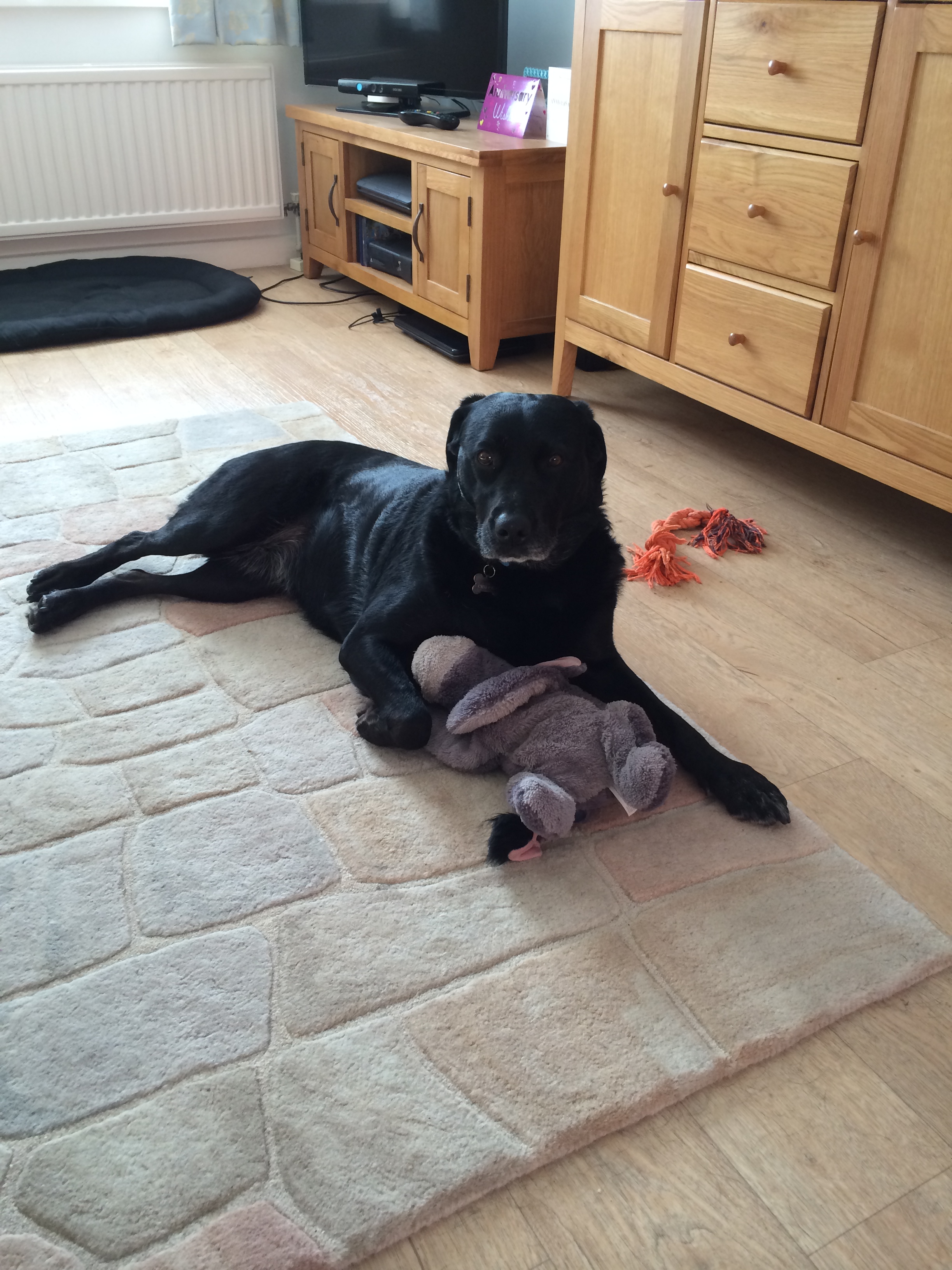 Izzy and Jazzy having a cool off in the stream during their 1 hour walk